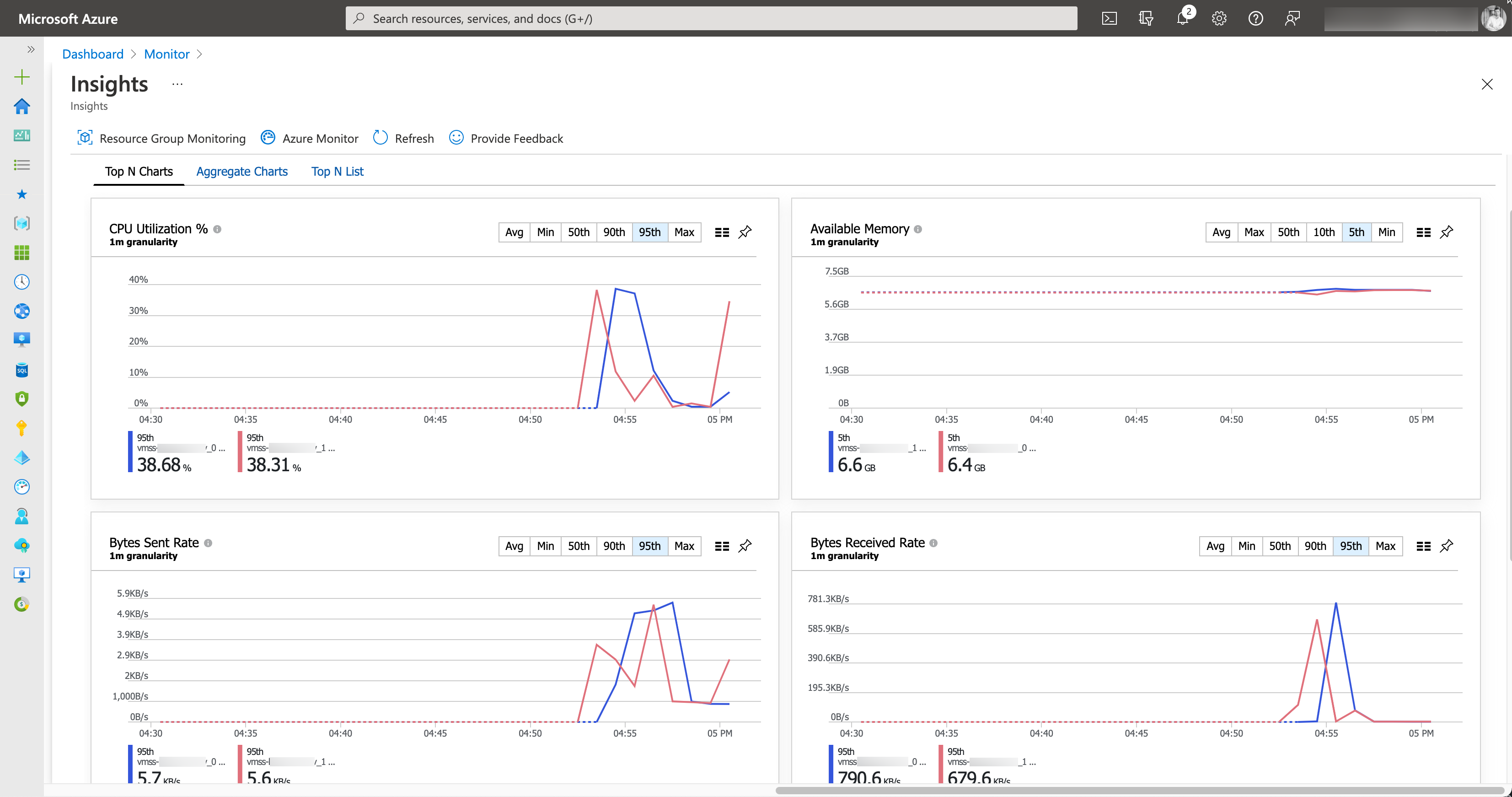 At this point, VMInsights will present some pre-configured metric-based charts, as shown in the following picture.