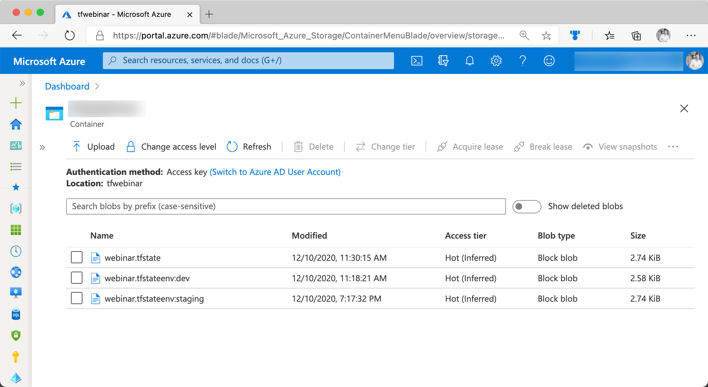 If you want to know which workspace you are currently interacting with, execute terraform workspace show. Terraform will quickly print the name of the current workspace.